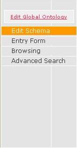 The user selects one of the four modules and then selects one of the four processes on the left menu which are: "Edit Schema", "Entry Form", "Browsing", and "Advanced Search".